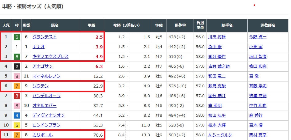 今回も上位人気と穴馬が選ばれていますね。