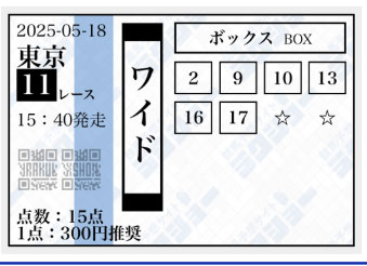 ワイドの5頭ボックスの予想になるようです。