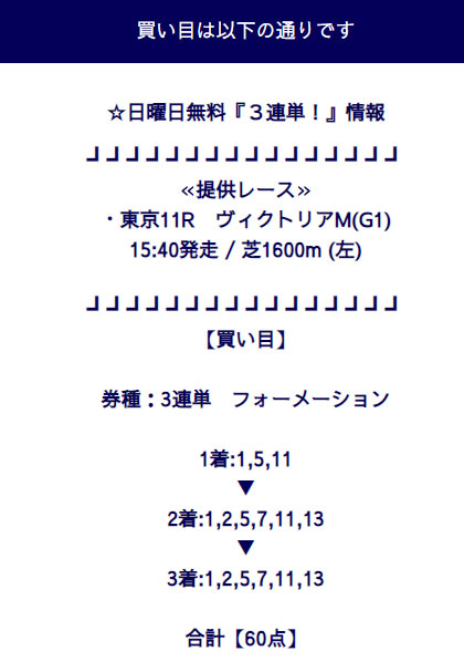 1人気を拾ってるかと思いきやブービー人気馬を拾ったりと、買い目の意図が読みづらく、人気馬から流して穴馬を拾うなら買い目として意図が読めるが、説明書きも無くまともな競馬ファンならこの買い目を出されても参考にはし難い。