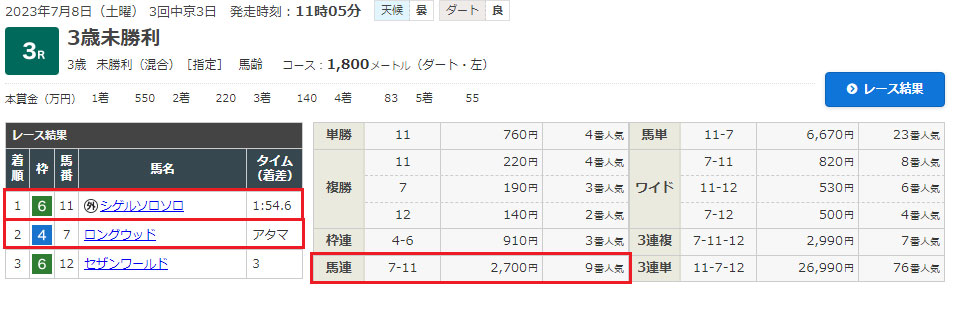 1、3番人気で決まりました。トリガミにならなくてよかったです。