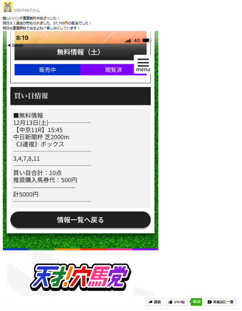 【無料予想】中日新聞杯(G3)5万7700円的中!