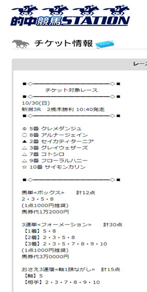 ぜひみなさまも【的中競馬ステーション】に無料登録してコツコツとチケットを貯めて情報を購入してみてください。