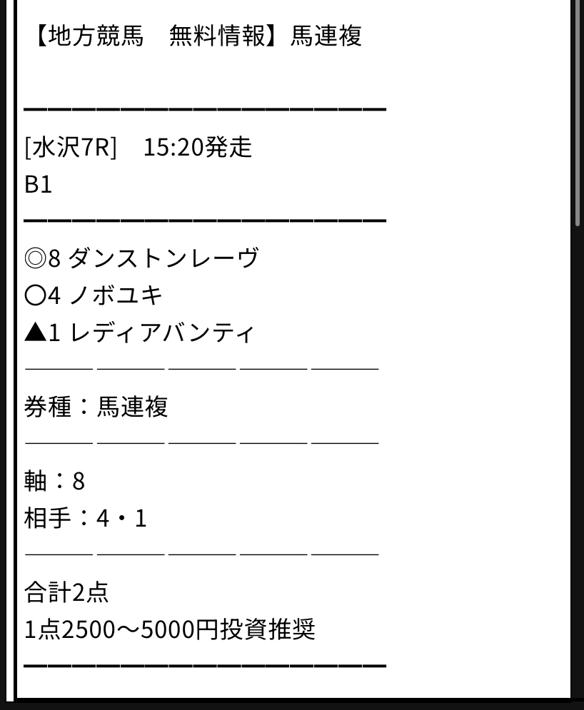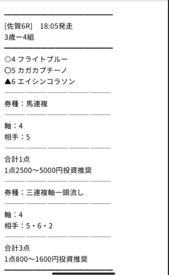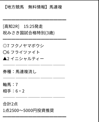 そしてさっそくLINE登録して、土曜日に公開された情報は2レース分ありました。
