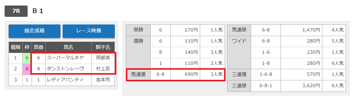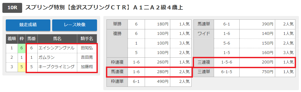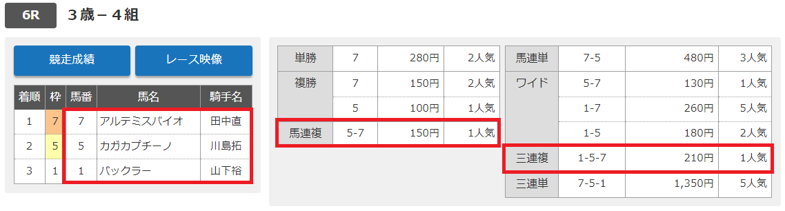 1番人気の⑥を切っていましたが、人気の3頭で決まってしまいましたね。