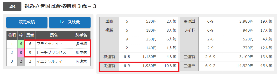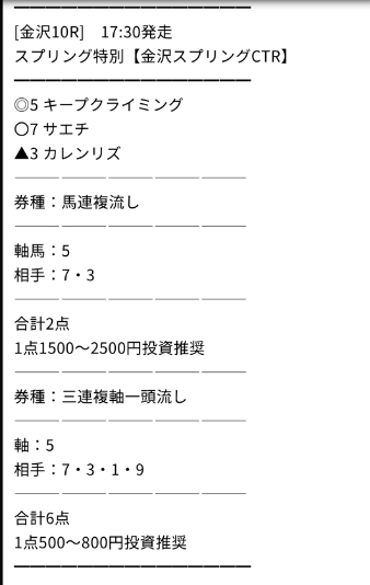 そして次の日の日曜日に公開されていた予想も2レース分ありました。