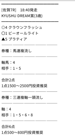 佐賀競馬場の7Rの予想になります。