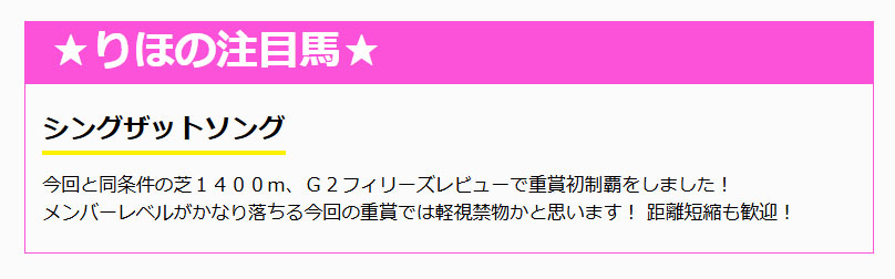 今回も人気馬と穴馬1頭を選んでいる予想になりますね。