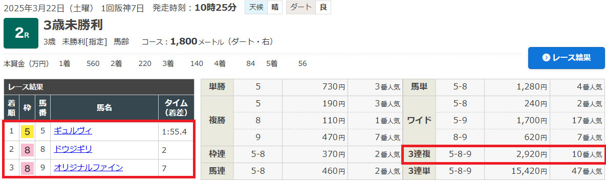 早い時間のレースなのでここで的中して重賞の軍資金確保となるでしょうか?