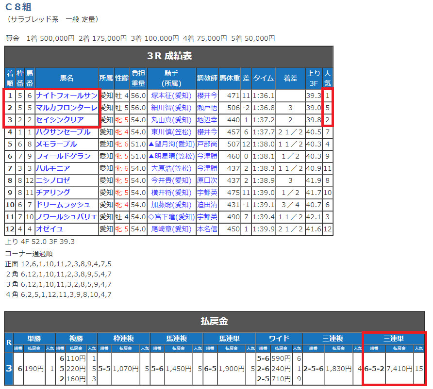 6-5-2で的中!!中央競馬に引き続き地方競馬でも的中しました!
