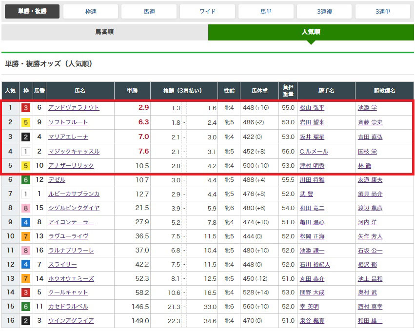 ワイド5頭BOXで投資金額100円という予想
