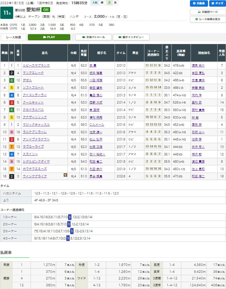 【検証レース:1/15 GⅢ愛知杯】