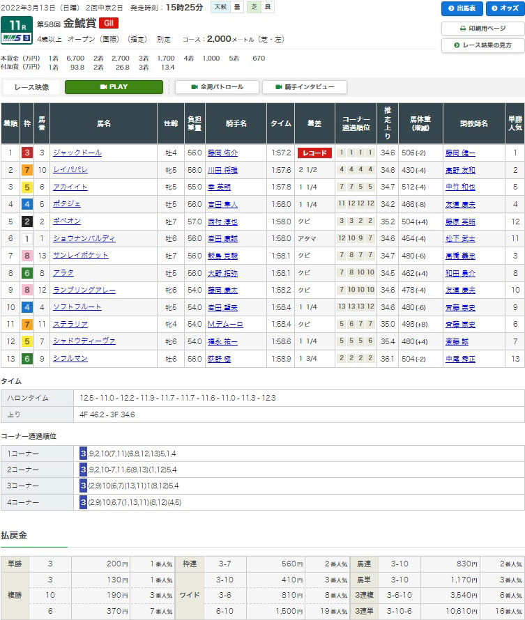 【検証レース:3/13 中京11R 金鯱賞】