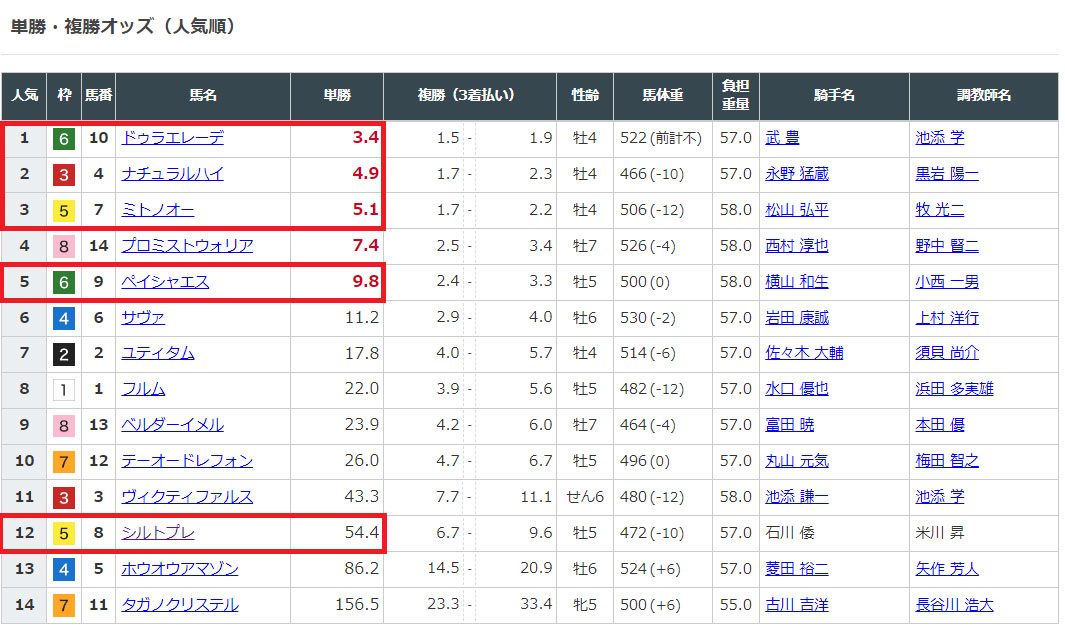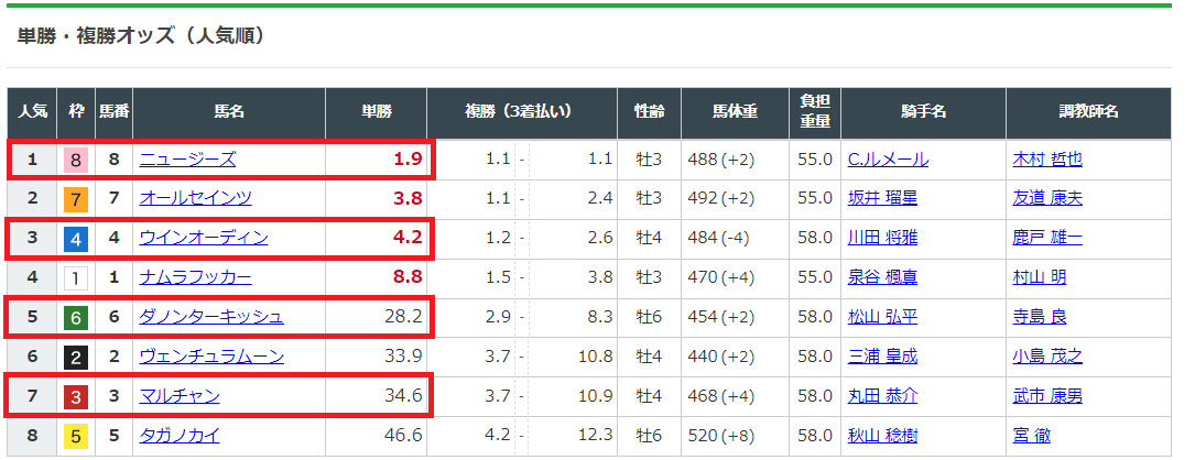 選んだ馬のオッズを見てみると、