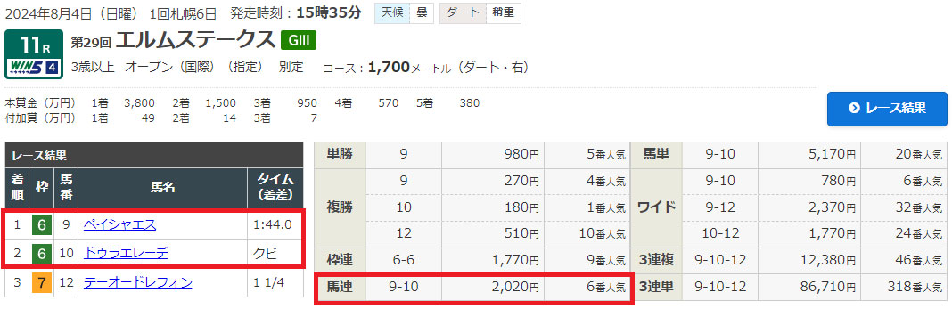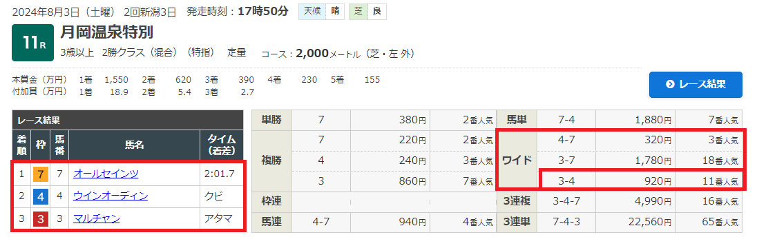 3-4のワイドが的中!