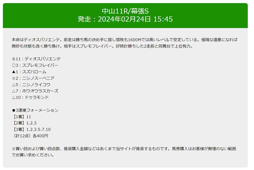 中山記念(G2)も小倉の平場のレースも見事に当てていますね。
