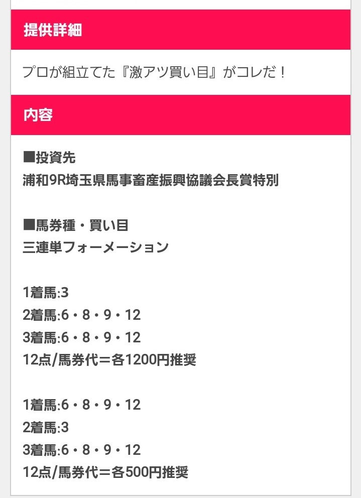 本日地方交流のレースも開催されていて3会場の開催だったのですが、その中でも南関競馬の浦和競馬の予想を公開していました。