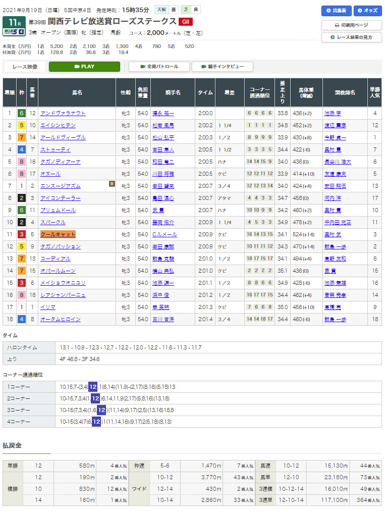 サイトの案内ではクールキャット(3人気)をゴリゴリ推奨していたが11着凡走。