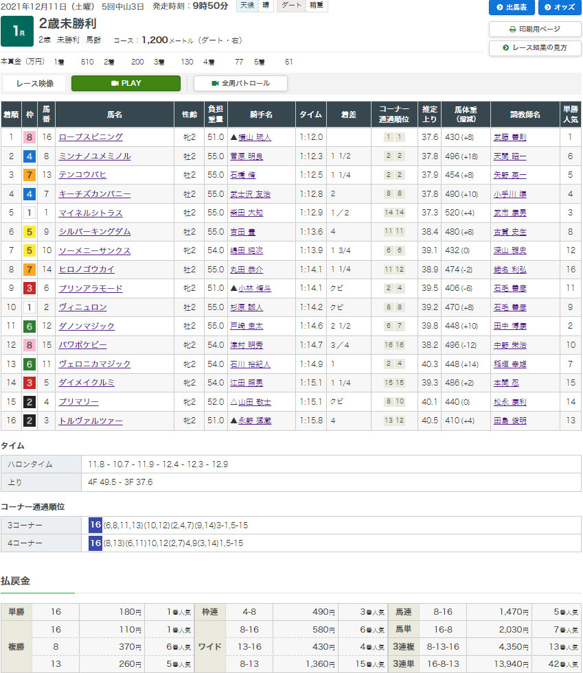 【検証レース:12月11日(土)中山1R2歳未勝利】