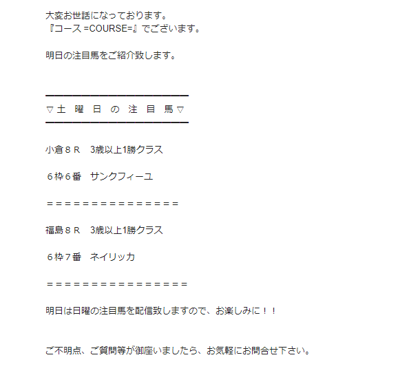 1番人気推して飛ばしすぎじゃね? 当たらない迷惑メール送って来ないでください