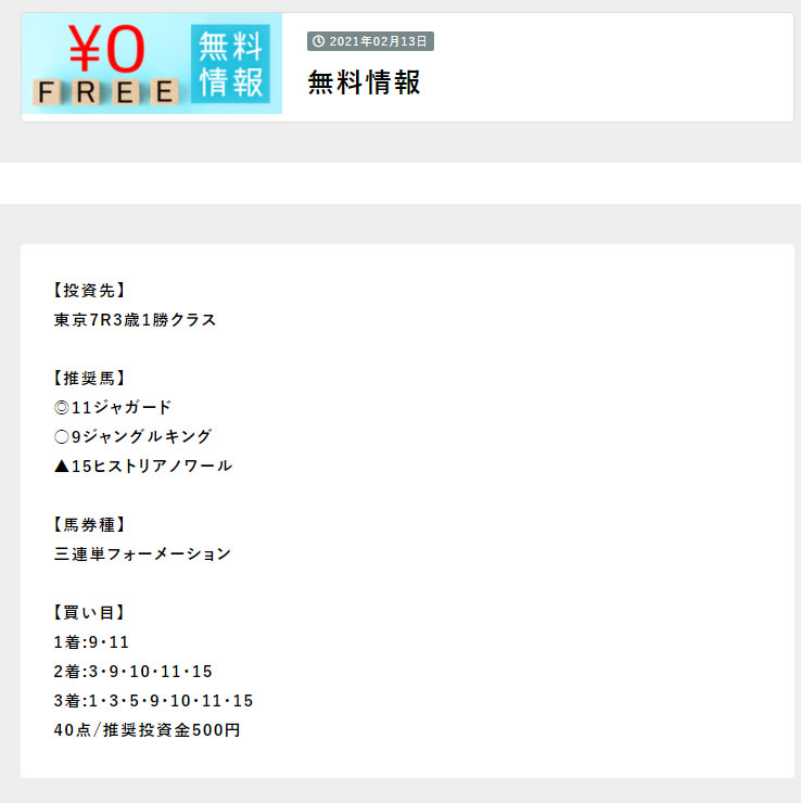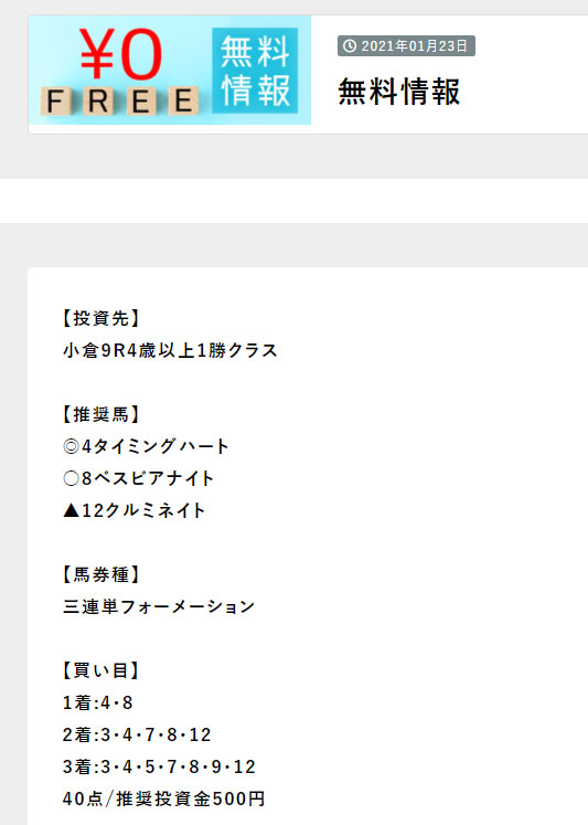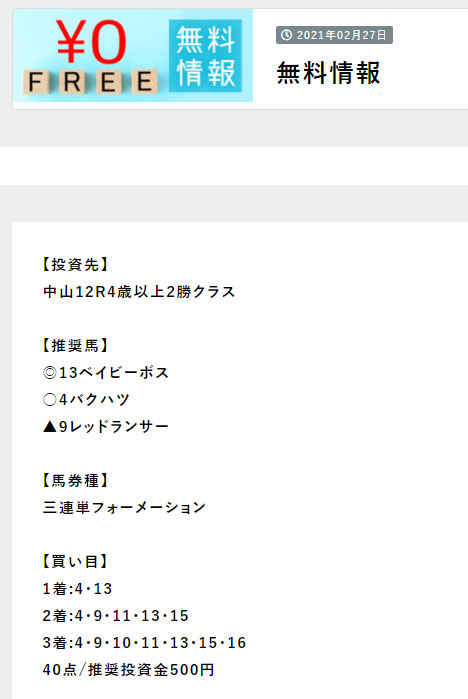 有料情報に参加する前に実績が確認できた事が不幸中の幸い、大負けせずに済みました。