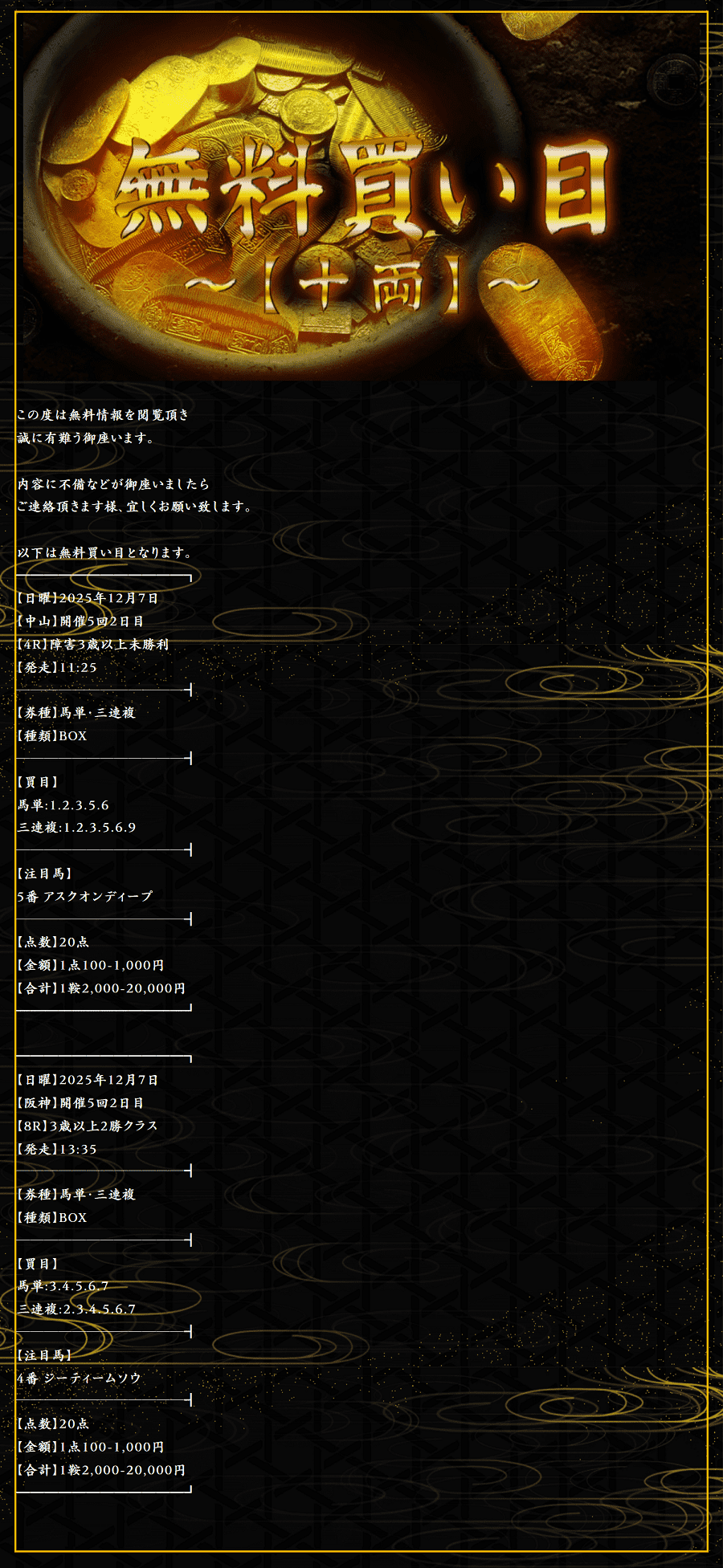 麒麟の無料情報やりますね、馬単&3連複無料予想