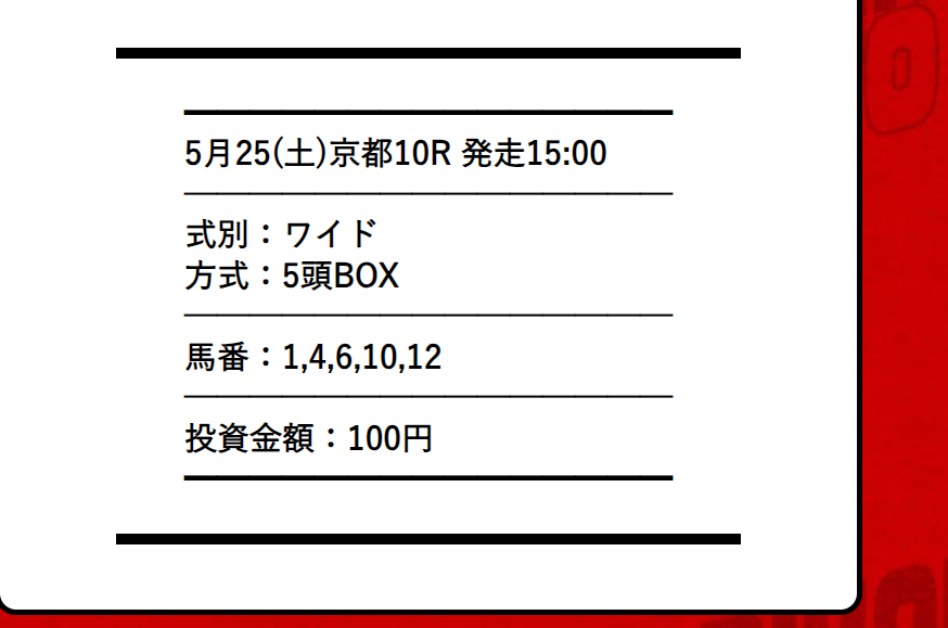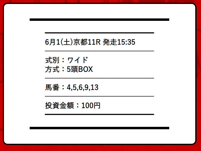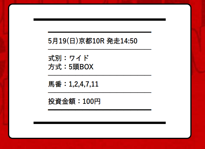 約束された万馬券の買い目が届く!