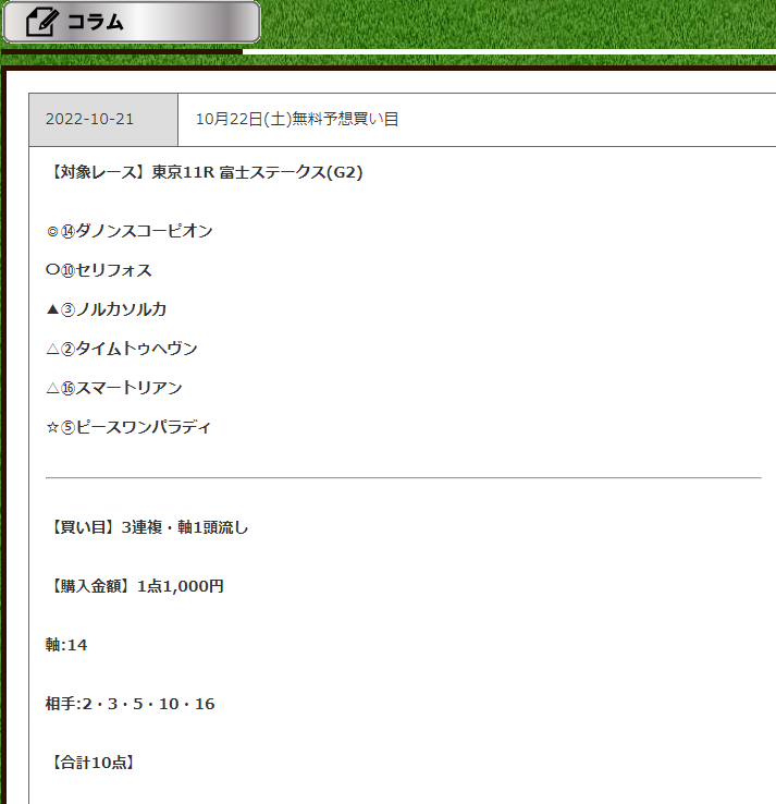 初めてこちらのサイトを参考にさせてもらいましたが、リピートはないですかね。 予算だった10万円がパーになりました。。無料予想はこんなものなのでしょうか❓