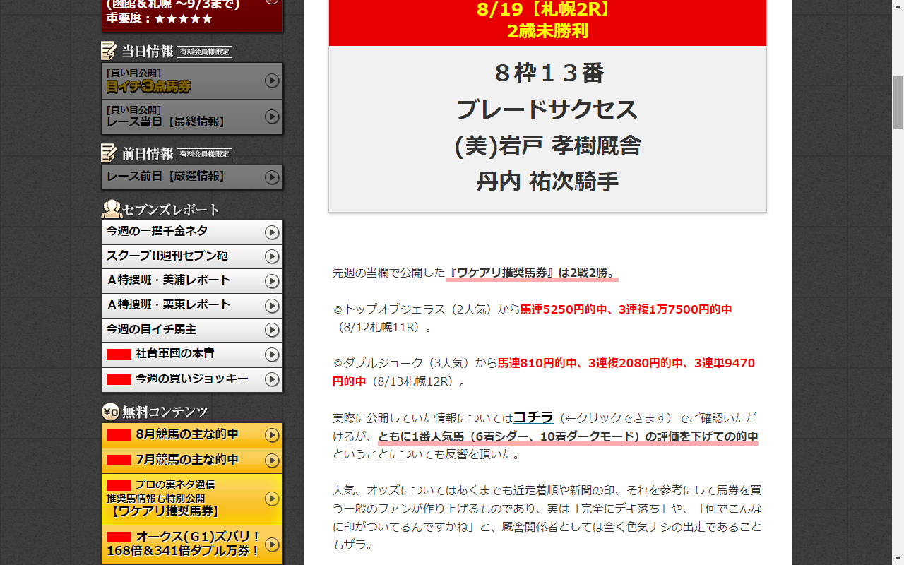 私にはとても支払えない情報料金。大々的に函館でも「的中」を出した。