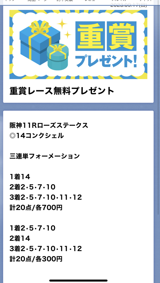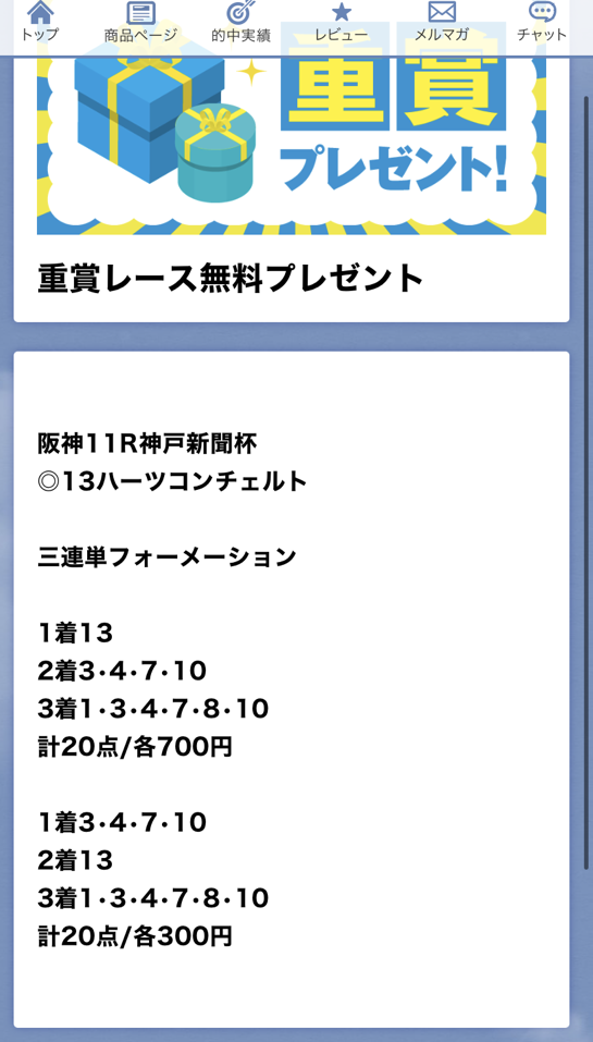 約束された万馬券の買い目が届く!