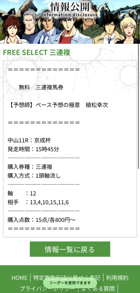暮れの大一番、有馬記念の無料予想は嬉しいかったです。
