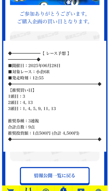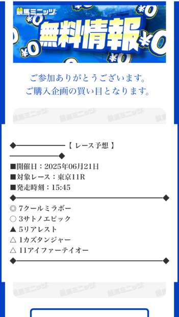 約束された万馬券の買い目が届く!