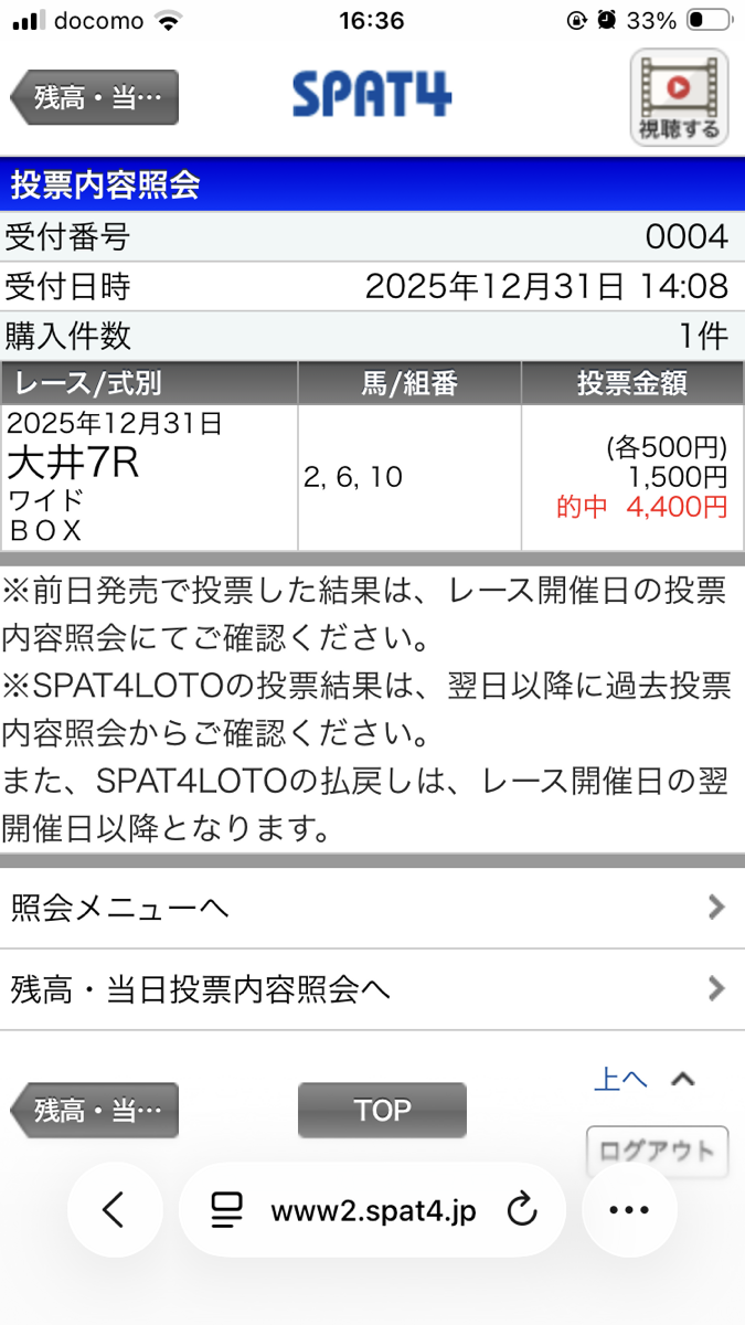 今日の無料情報12/31(水) ⑨が除外になったので3頭で買いましたが、ズバリでした💦脱帽です